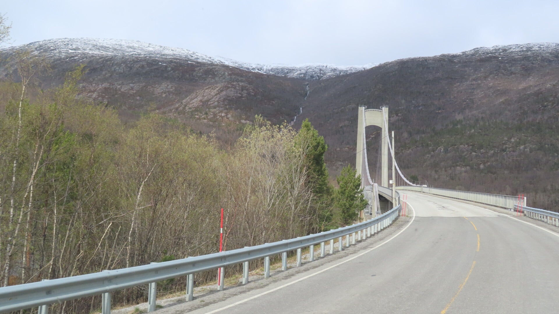 La route pour Ballangen ne m'inspire pas trop, neige, camping-car et route c'est un peu stressant. Finalement nous arrivons à Bognes au moment où le ferry arrive et la route s'est bien déroulée. On a eu tous les temps, de la neige, de la pluie et aussi du soleil. Les routes sont sèches donc pas de problème.