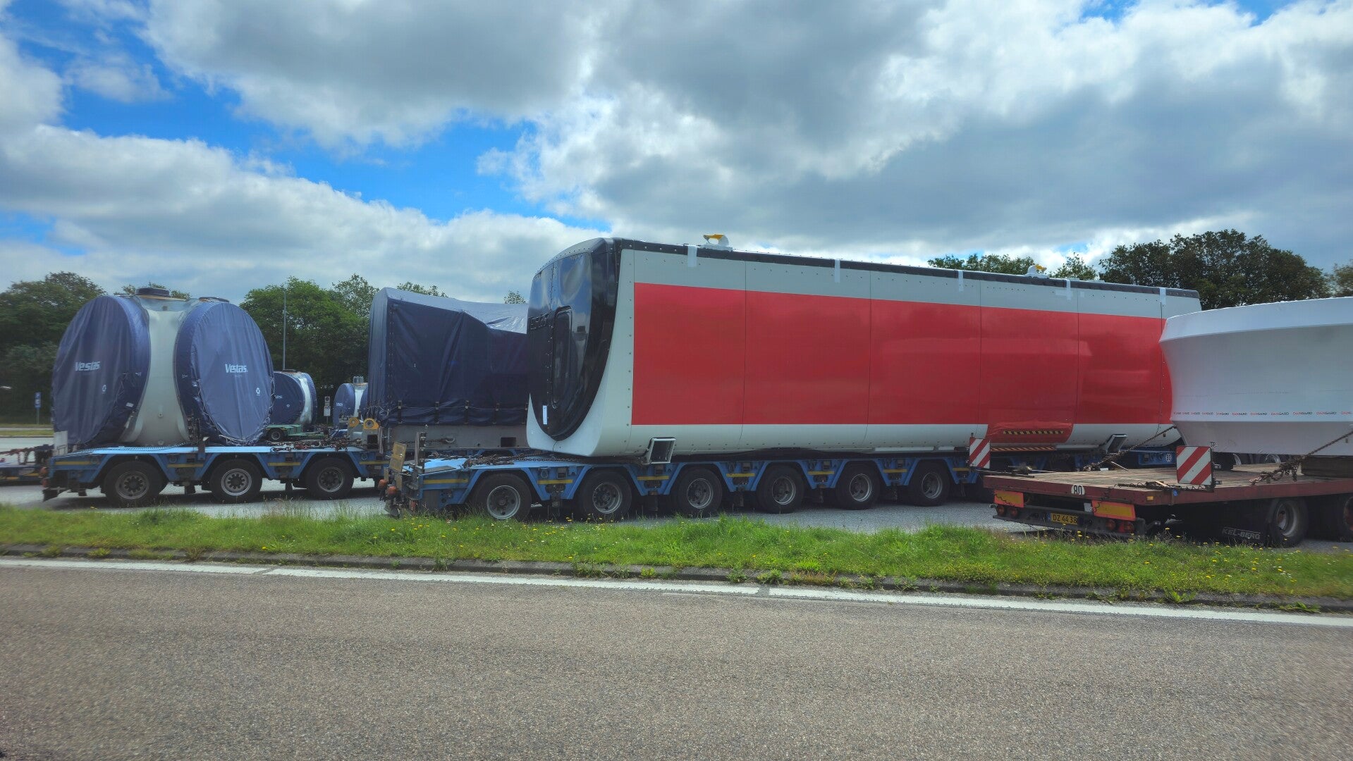 Puis juste pour montrer la grandeur des moteurs pour la production de l'électricité des éoliennes, moteurs qui en haut de leurs mâts semblent petits mais qui en réalité quand on les croise, sont vraiment imposants.