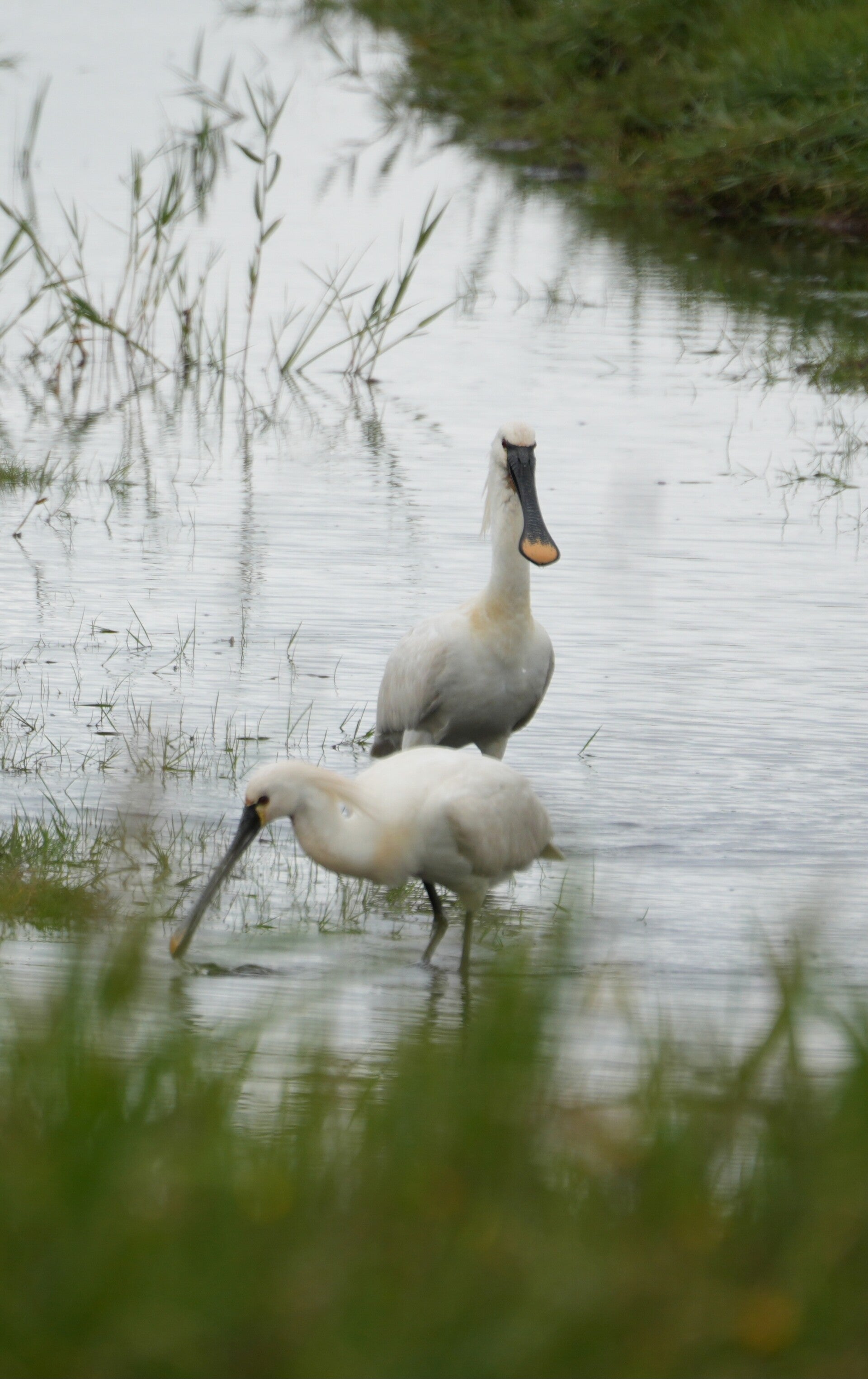 Nous croisons des cormorans, des hérons cendrés, des petites spatules er des vols de cygnes.