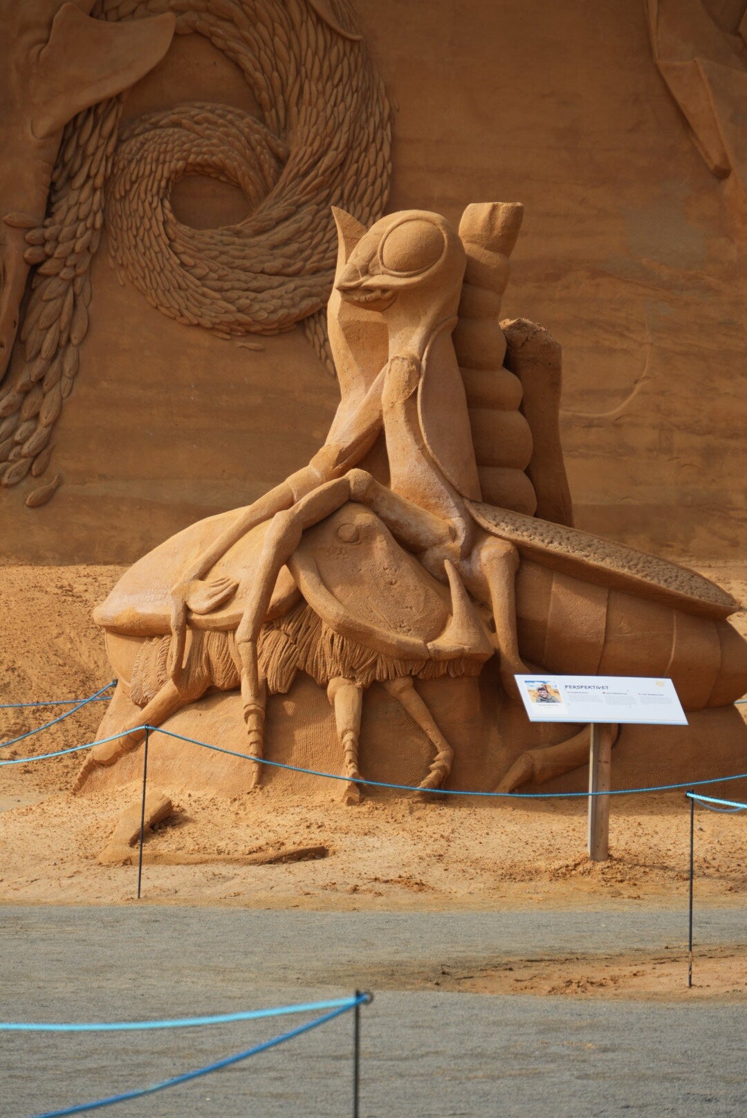 Sur le retour, visite de l'exposition éphémère de sculptures en sable de Søndervig. Ces sculptures sont faites que de sable et d'eau et durent entre 3 et 4 mois selon le vent et le temps.